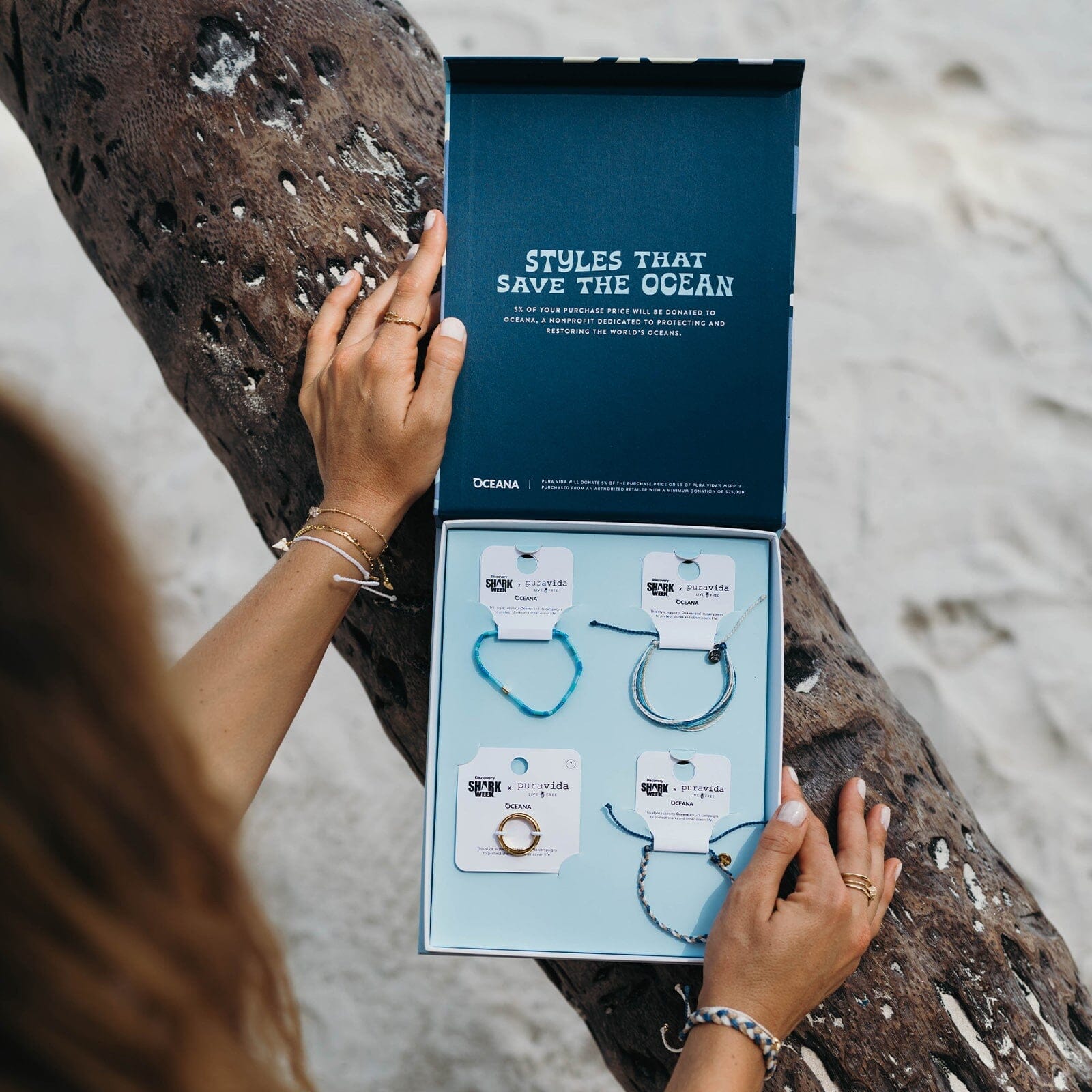 Made to store all your favorite Shark Week pieces and other PV styles, our Shark Week '24 Collection Box features a cool graphic design and is perfect for packing on all your summer vacays. For every box sold, Pura Vida will donate 5% of the purchase price ($25,000 minimum) to support Oceana’s campaigns to protect sharks and other ocean life.