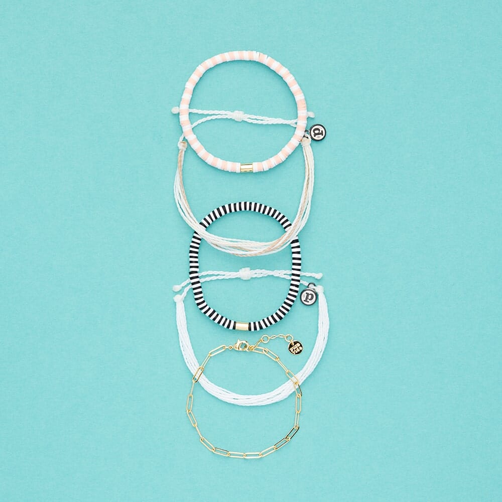 Crisp, clean, and effortlessly cool. The White Sands Pack channels neutral tones with a bold pop of black and white — like sun-bleached shores and fresh ocean breezes. Minimal yet statement-making, this stack goes with everything. Wear it solo for subtle vibes or stack it up for extra style points.